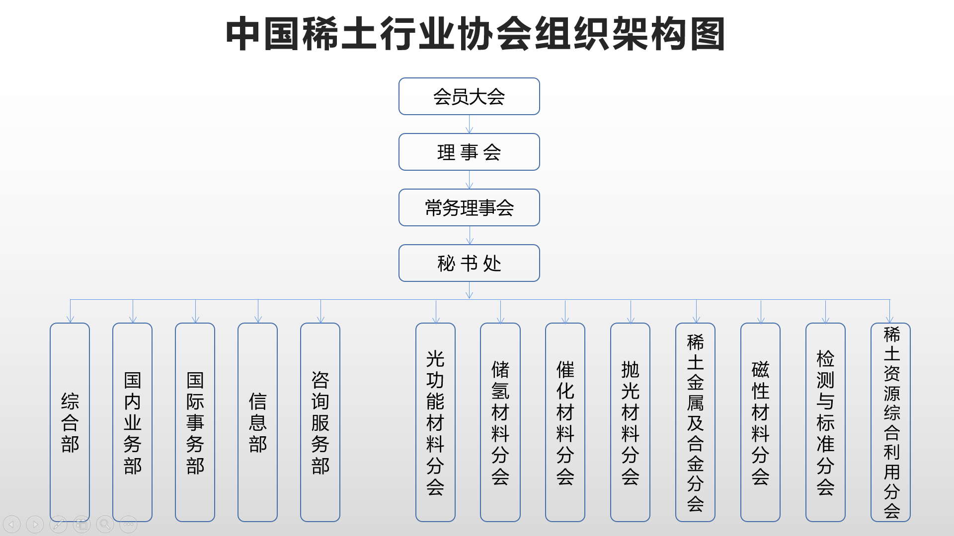 二级分会。至2023年底,协会共成立了8个专业分会,分别是:光功能材料分会、储氢材料分会、催化材料分会、抛光材料分会、稀土金属及合金分会、磁性材料分会、检测与标准分会、稀土资源综合利用分会。