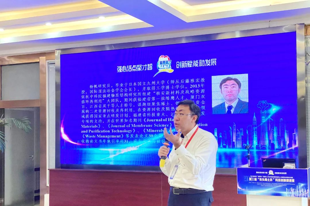本次大赛以“强心活点聚才智,创新赋能助发展”为主题,立足包头创新发展,聚焦稀土新材料产业领域,以组委会邀请、单位推介的方式招募科技创新项目参赛。通过项目征集、专家初审等环节,最终确定来自中国科学院福建物质结构研究所、中国科学院城市环境研究所、中国科学院长春应用化学研究所、中科院金属研究所、包头稀土研究院、南开大学的6个项目入围最终的决赛。本次大赛设一等奖1名,奖金三万元;二等奖2名,奖金1.5万元;三等奖3名,奖金5千元。获奖项目及团队纳入包头稀土研发中心“四库一平台”(成果库、技术库、企业库、人才库;科技成果转化平台)建设项目,并有机会获“高技术跟踪计划”(≥30万元)或“雏鹰计划”(20万元左右)项目支持。